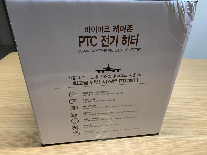 박스아트에 최고급 난방 시스템 PTC히터라고 표기되어있다.