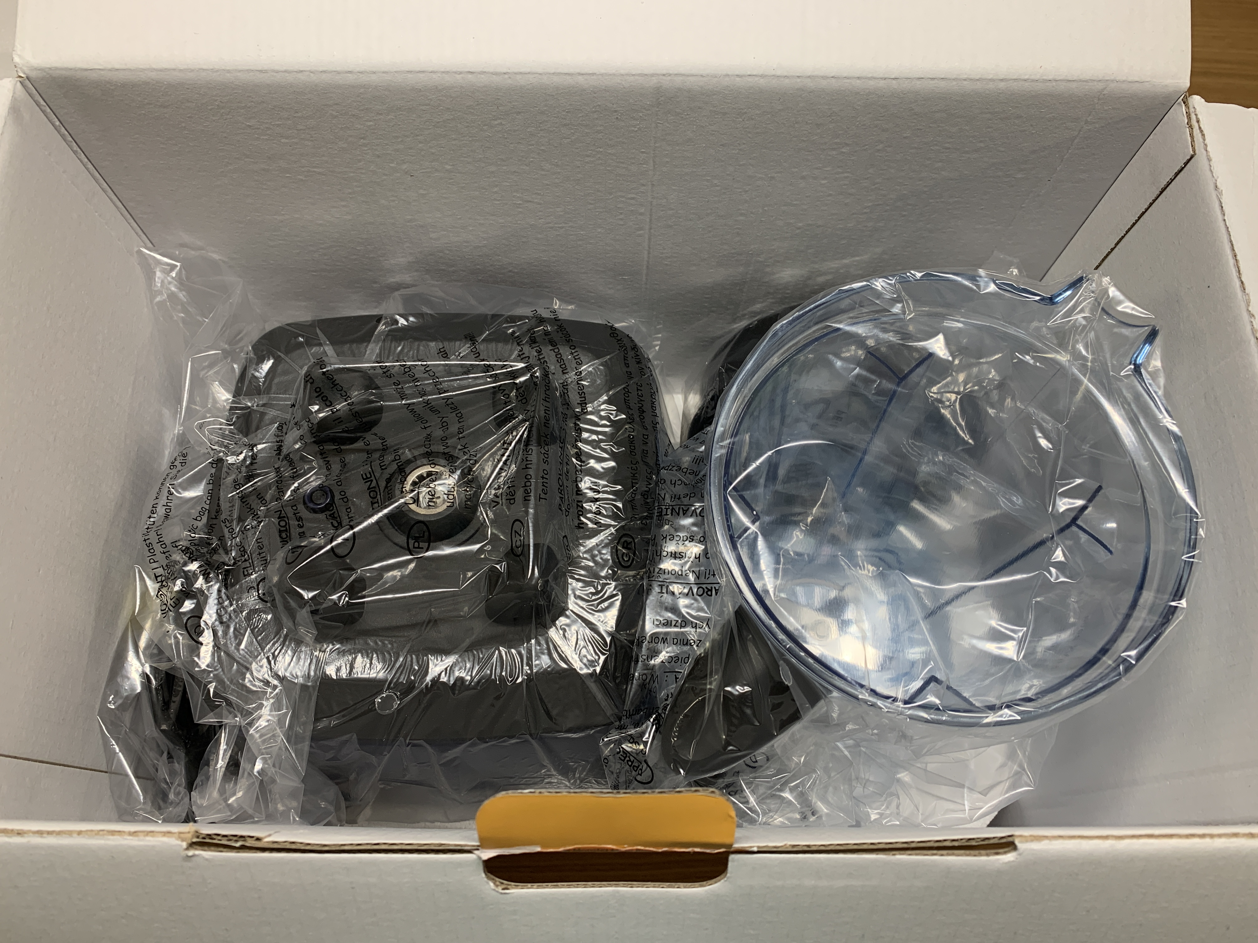 상단 스티로폼을 제거하면 본체와 믹서용기가 보입니다.