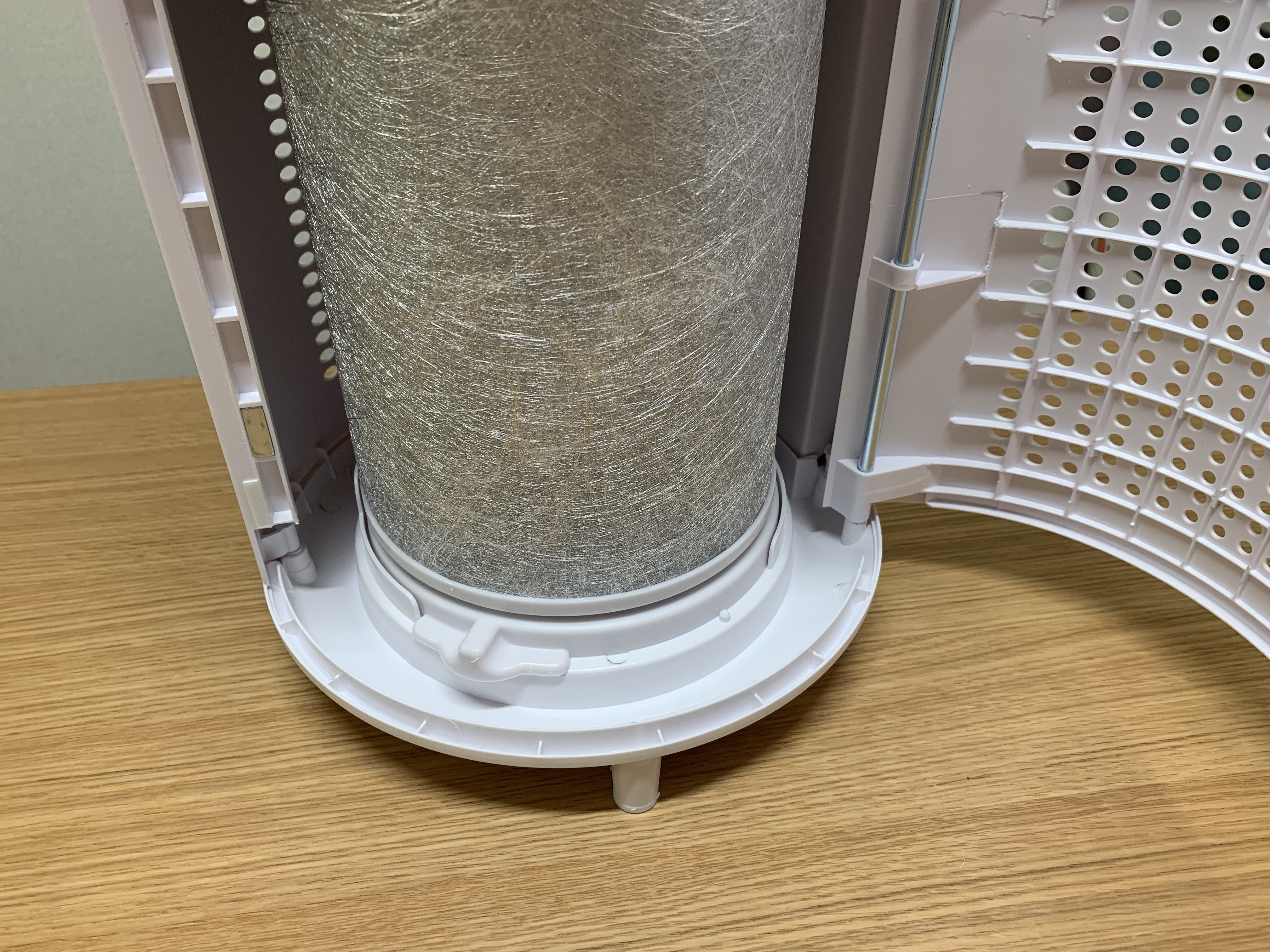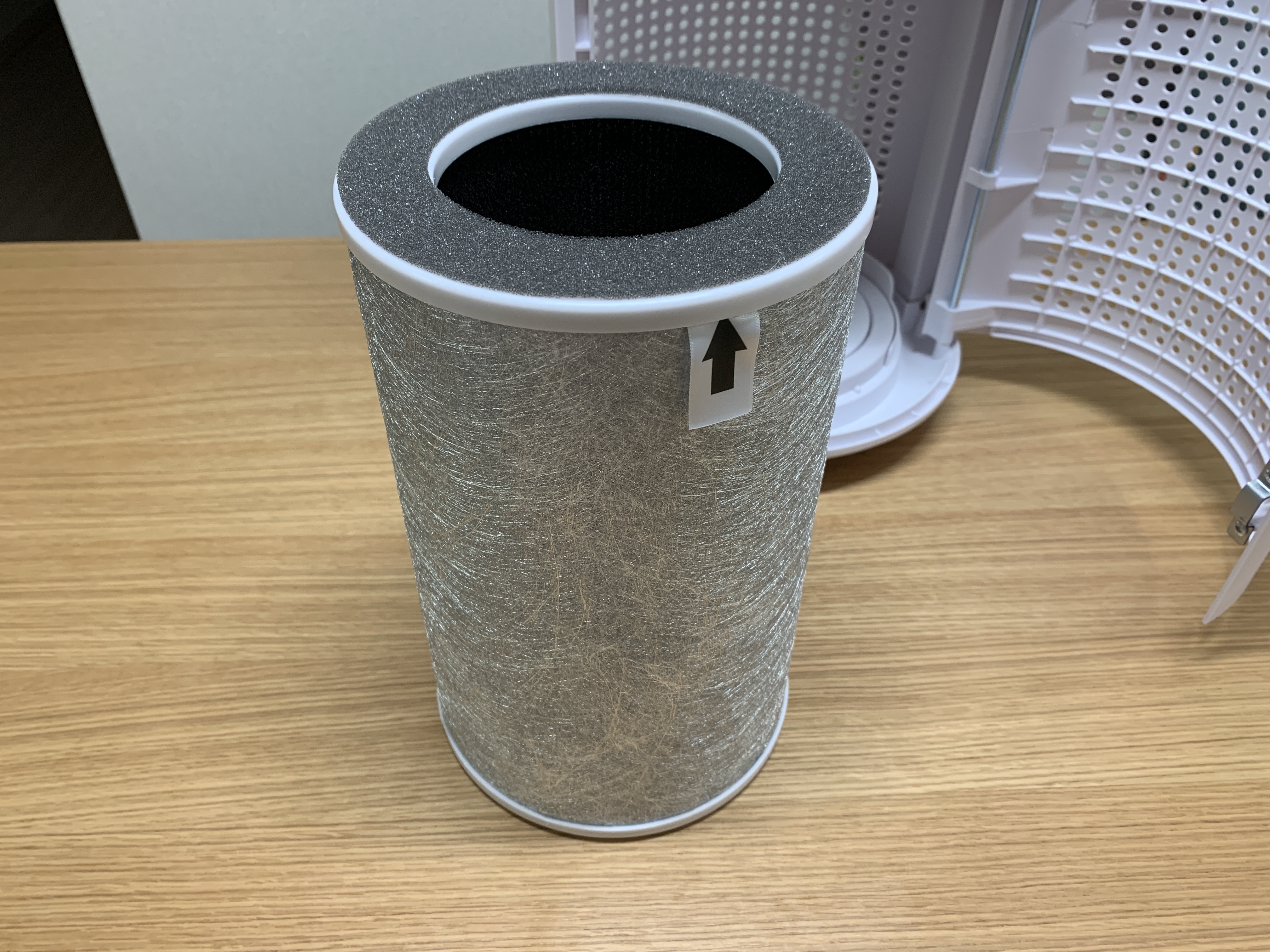 비닐 제거후 필터 모습. 13등급의 필터를 사용하며, 항균효과가 뛰어난 항균은사로 감싸져있는 필터.