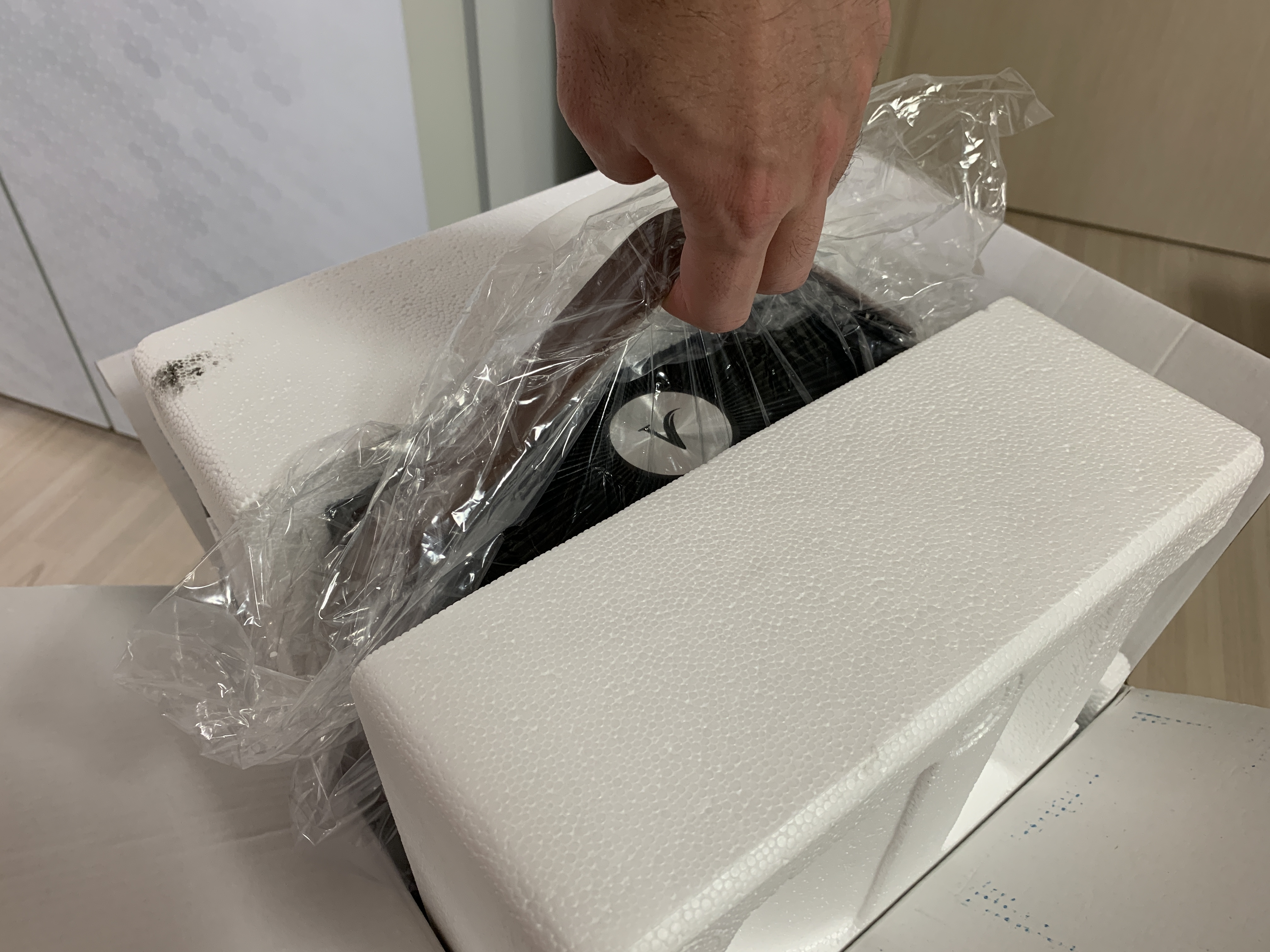 하부 뚜껑을 열면 필터가 있다. 비닐포장되어 있으니 꼭 비닐을 제거하고 사용하셔야 합니다.
