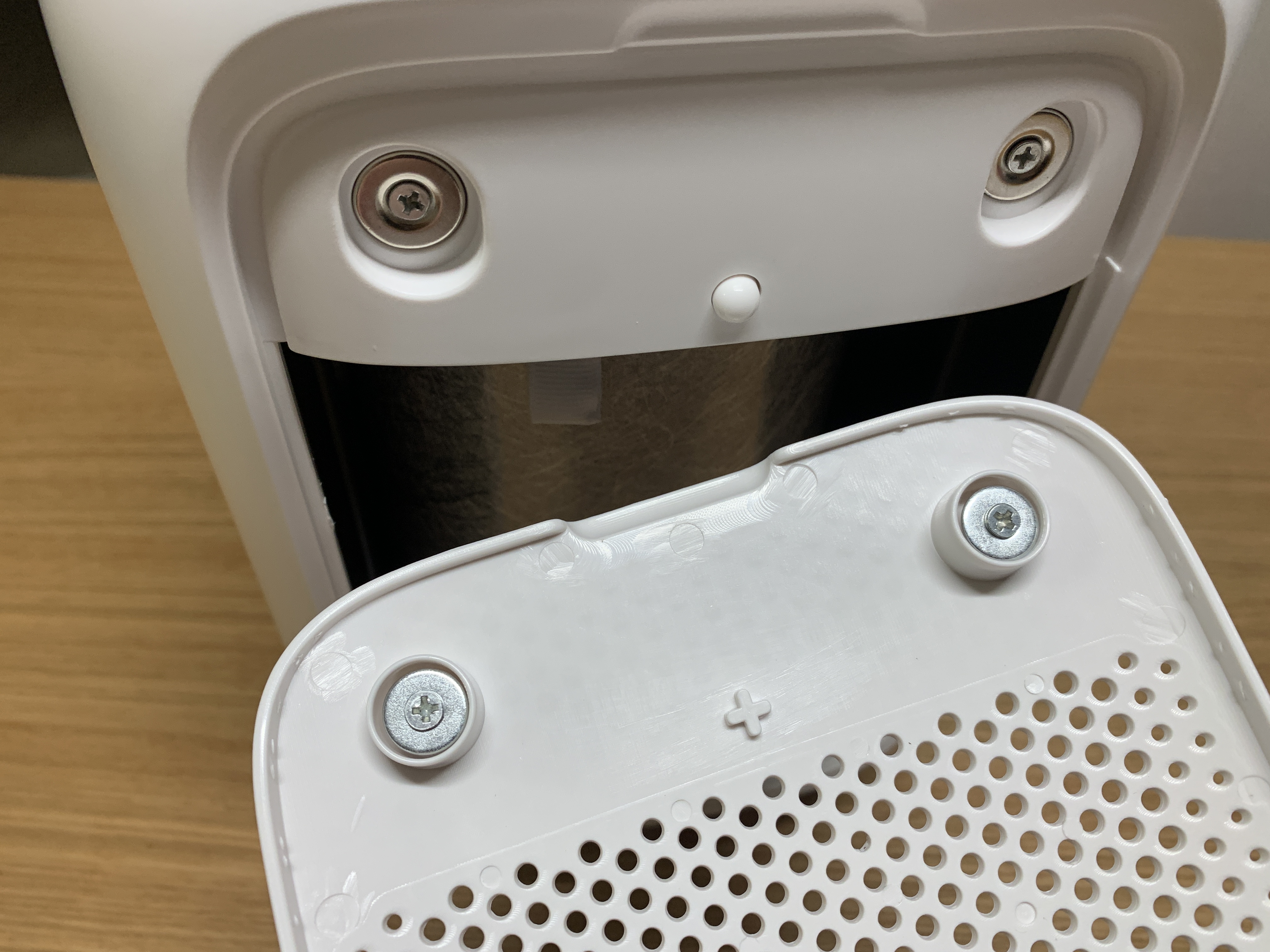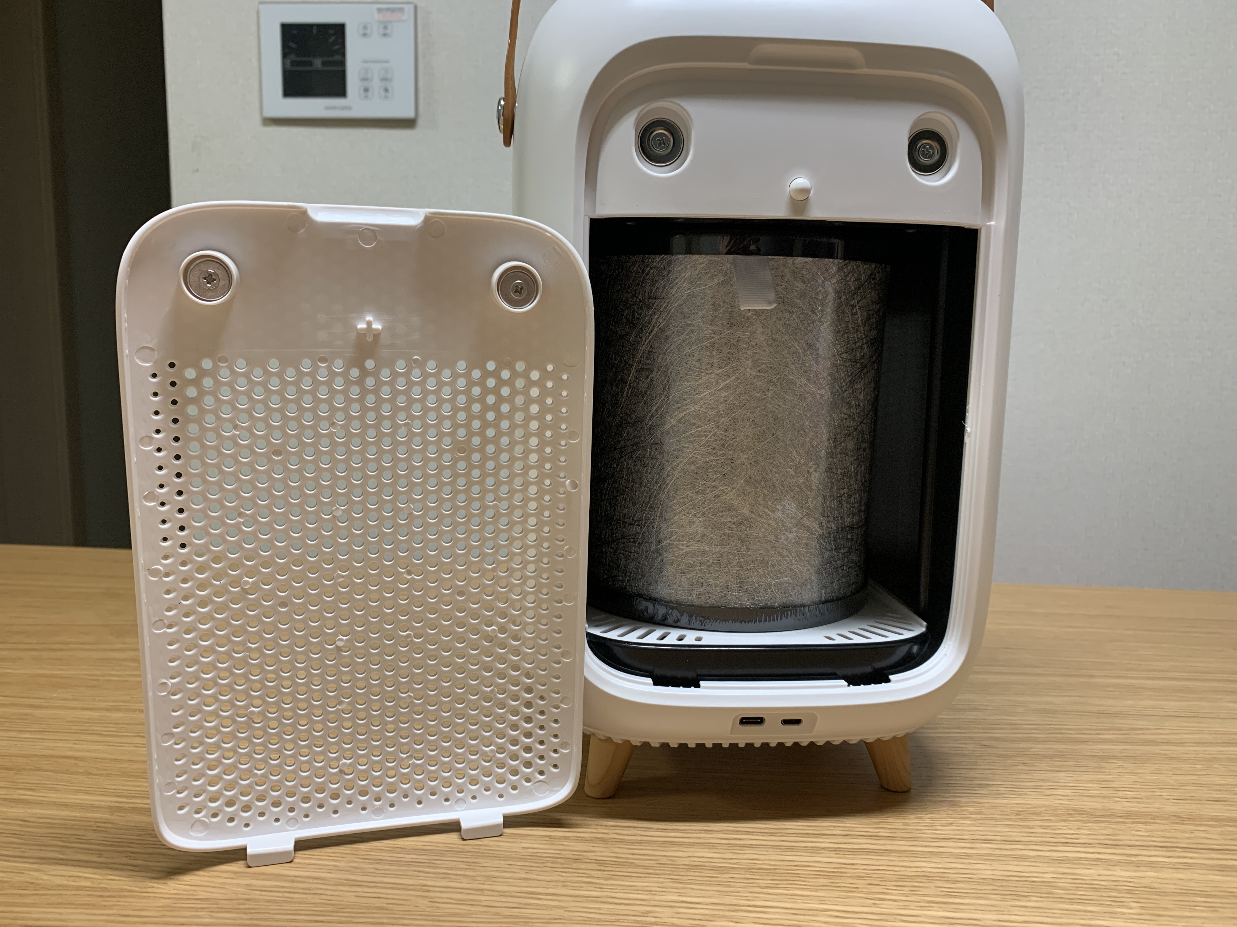 후면 편리한 필터 교체를 할수 있도록 설계되어 있다. 후면 커버가 열려 있을시 E1이라는 에러 메시지 표기