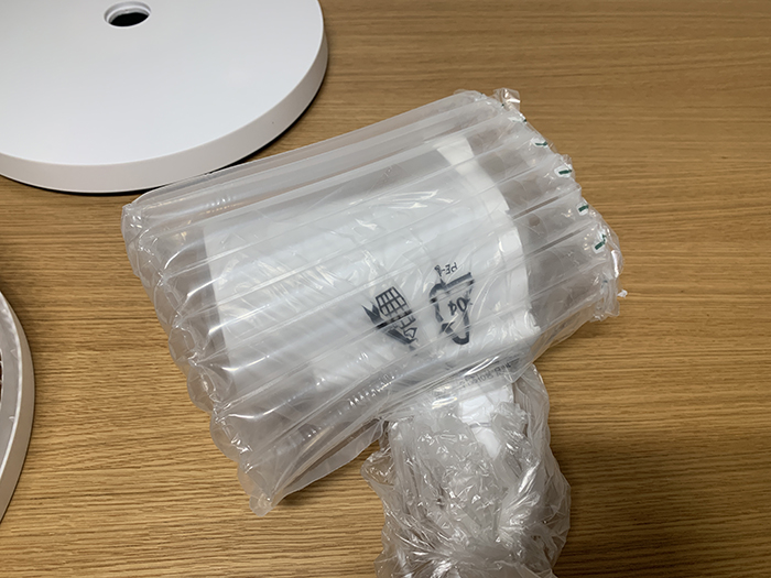 써큘레이터의 핵심인 모터를 보호하기 위해 에어캡으로 포장되어 있다.