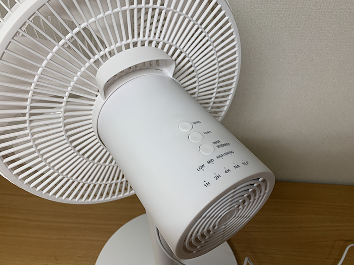 회전, 타이머, 풍량을 조절하는 버튼이 나열되어 있다.