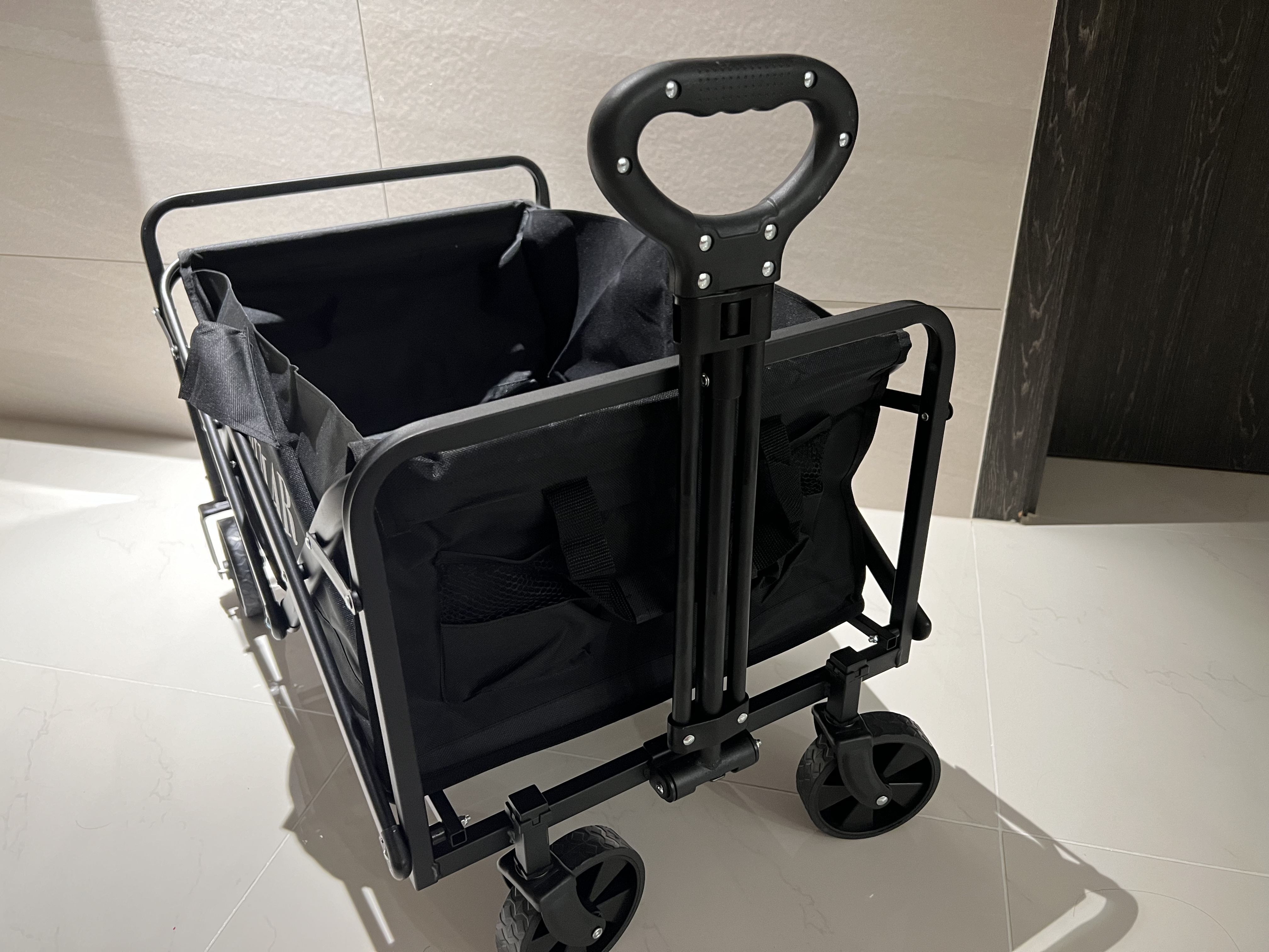 너무 크면 차에 싣고 내리기 할때 힘들고, 너무작으면 필요없어지는 웨건. 하지만 크지도 작지도 않은 알맞은 사이즈.