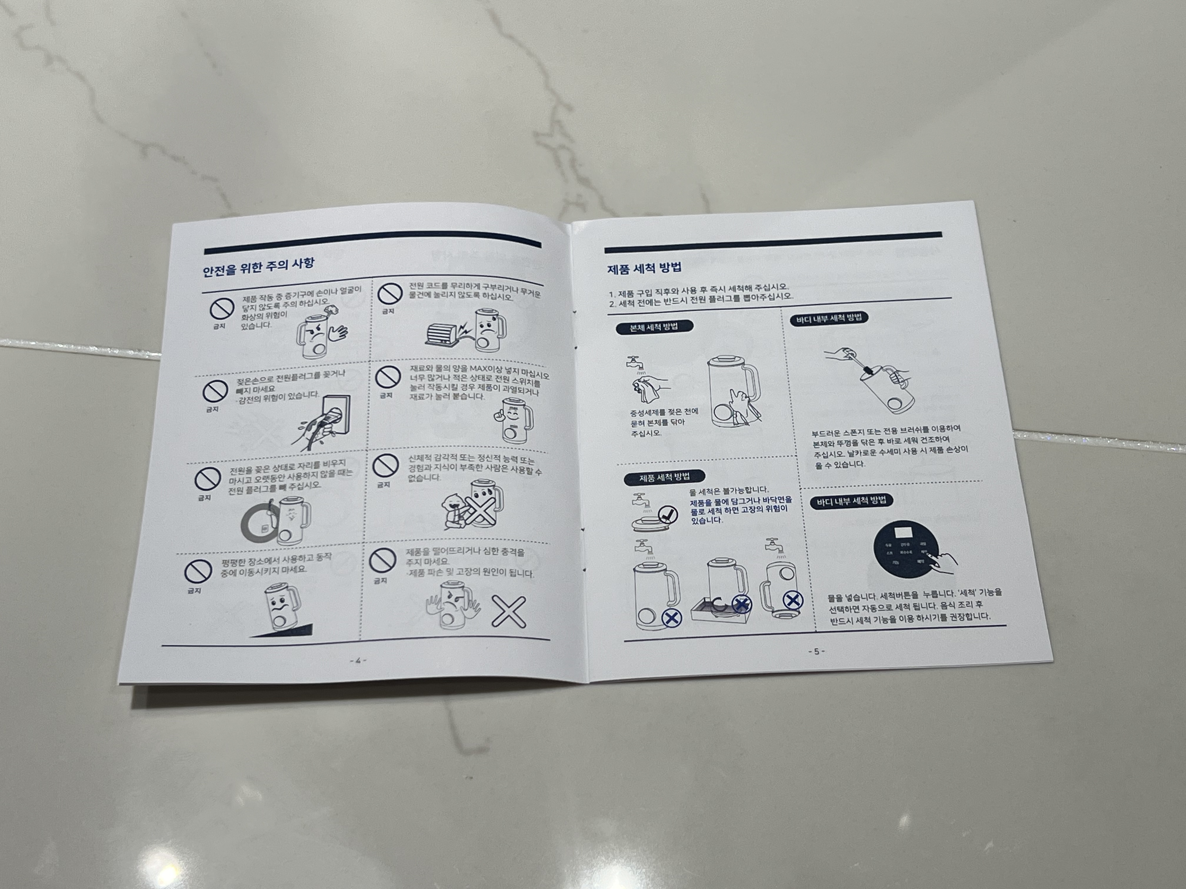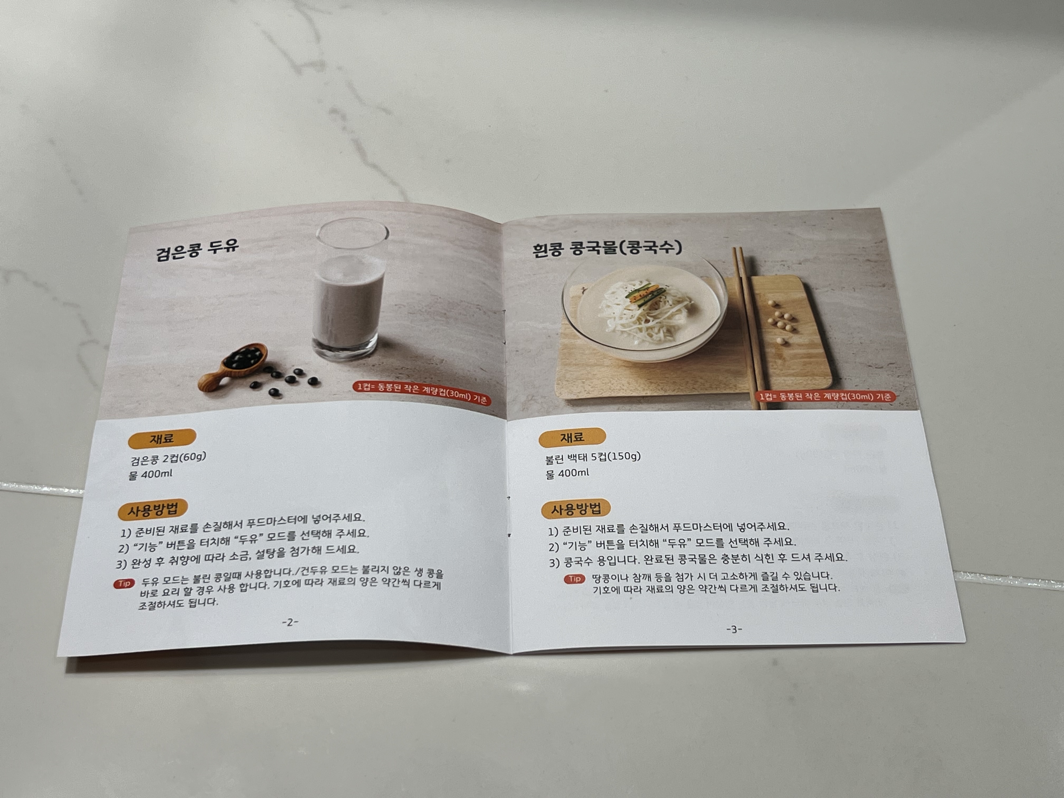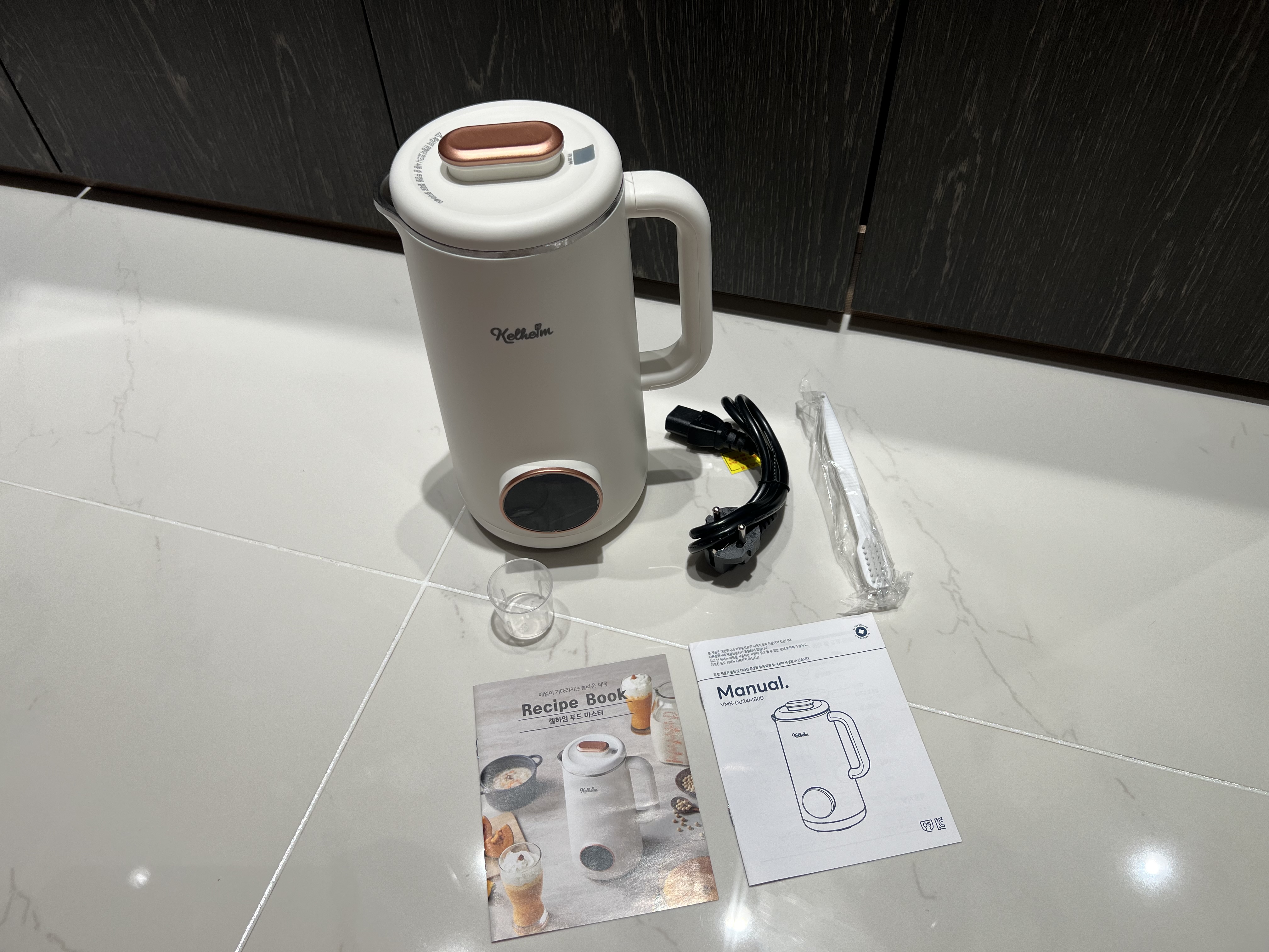 심플한구성 - 본품, 계량컵, 전원선, 전용브러쉬, 메뉴얼, 레시피북
