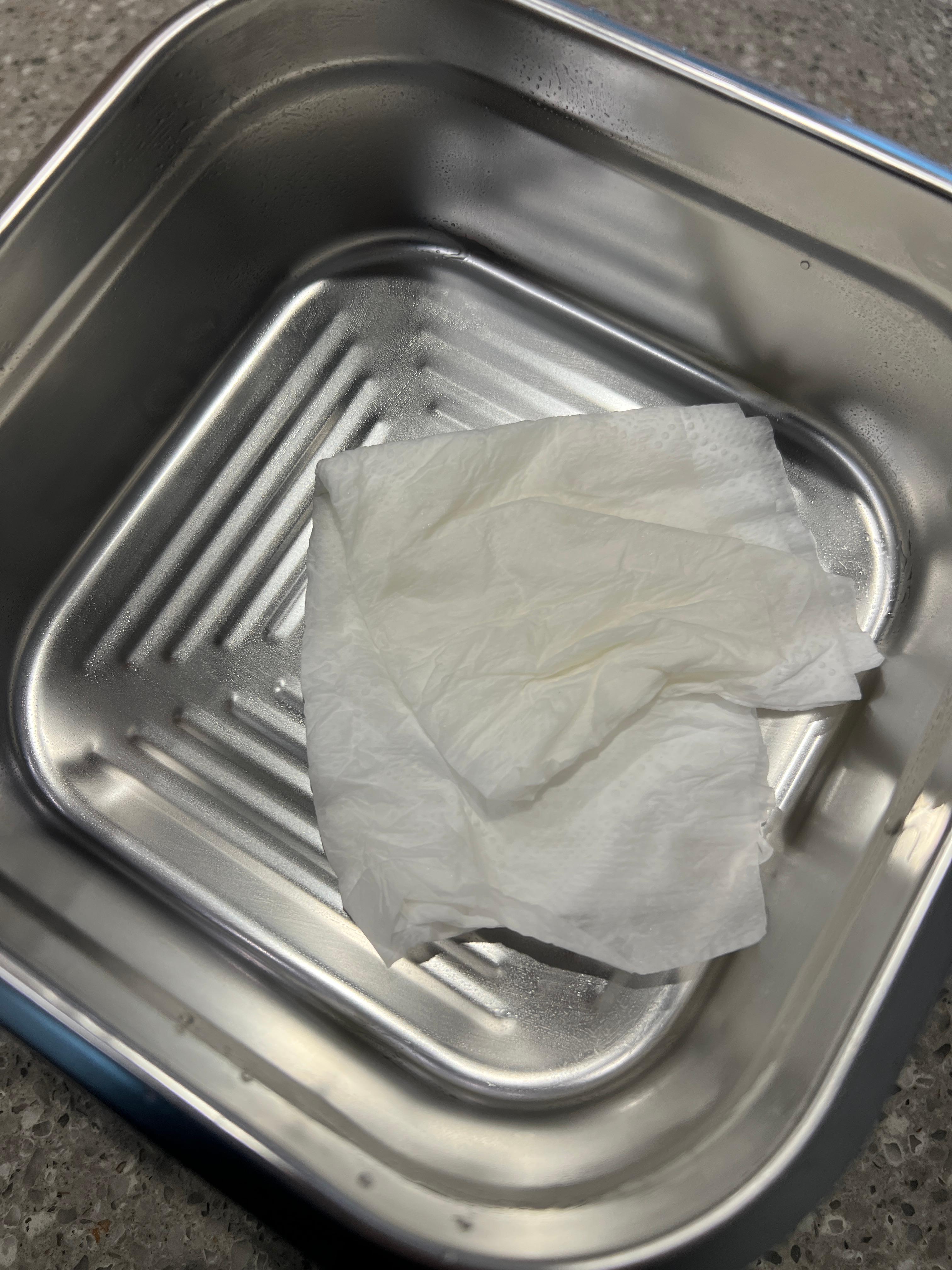 연마제를 제거하기 위해 식용유로 빡빡 문질렀지만 나오지 않는다.