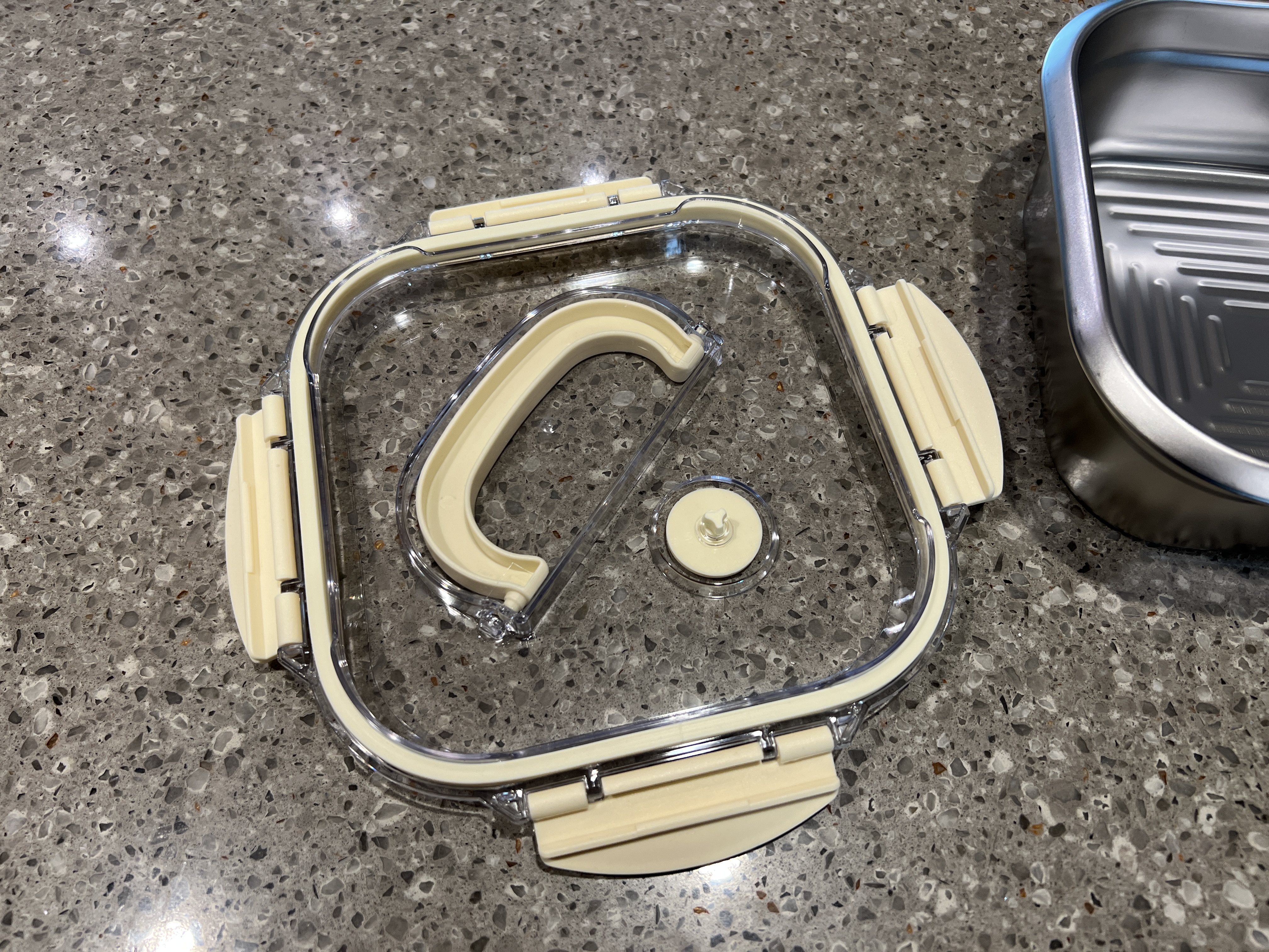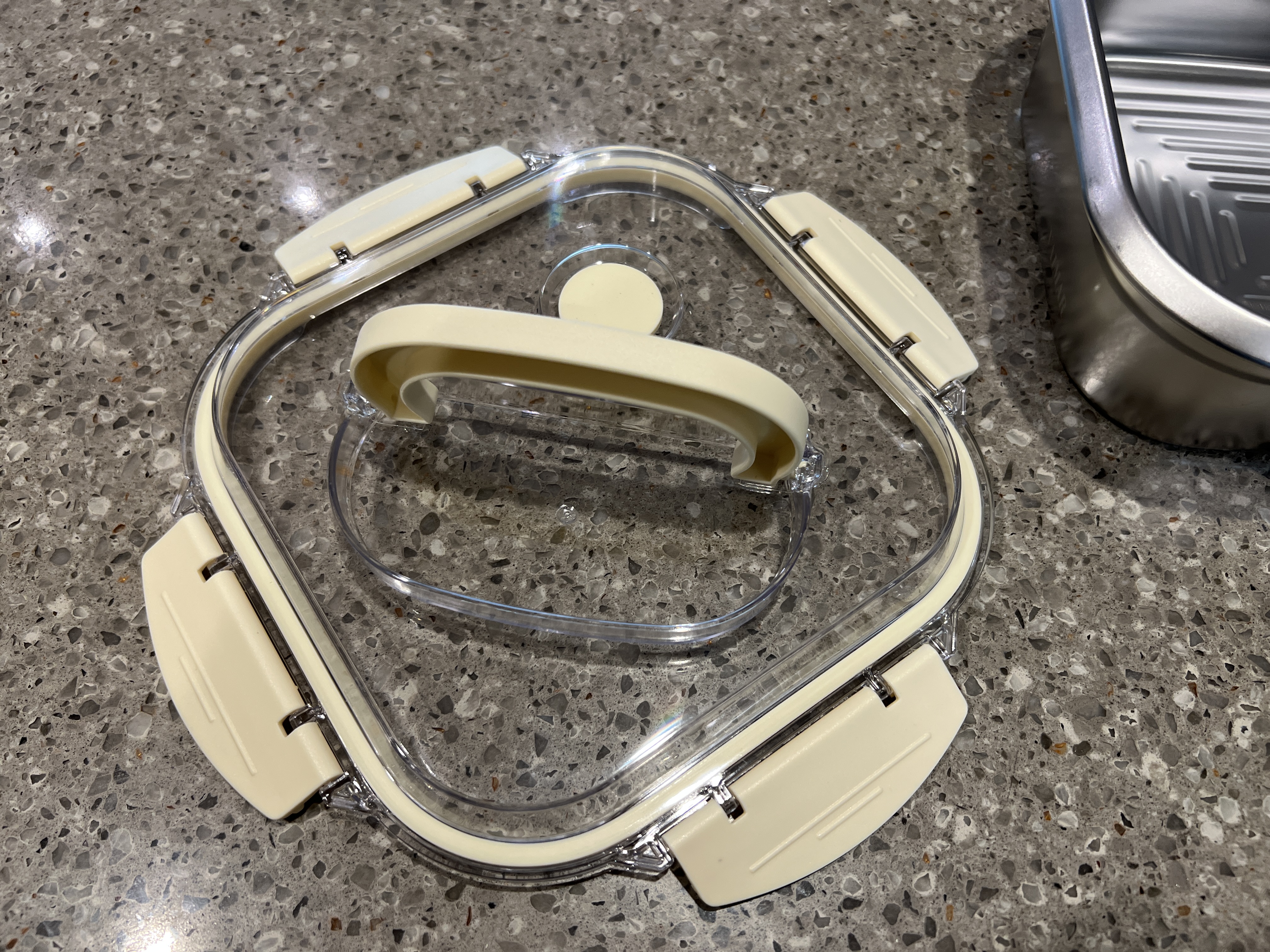내용물을 확인할수 있도록 투명으로 된 뚜껑과 손잡이